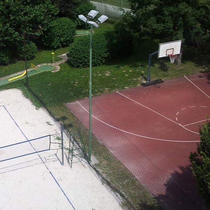 Košarkarsko igrišče je tudi osvetljeno in nudi možnosti igranja v večernih urah pod reflektorji.